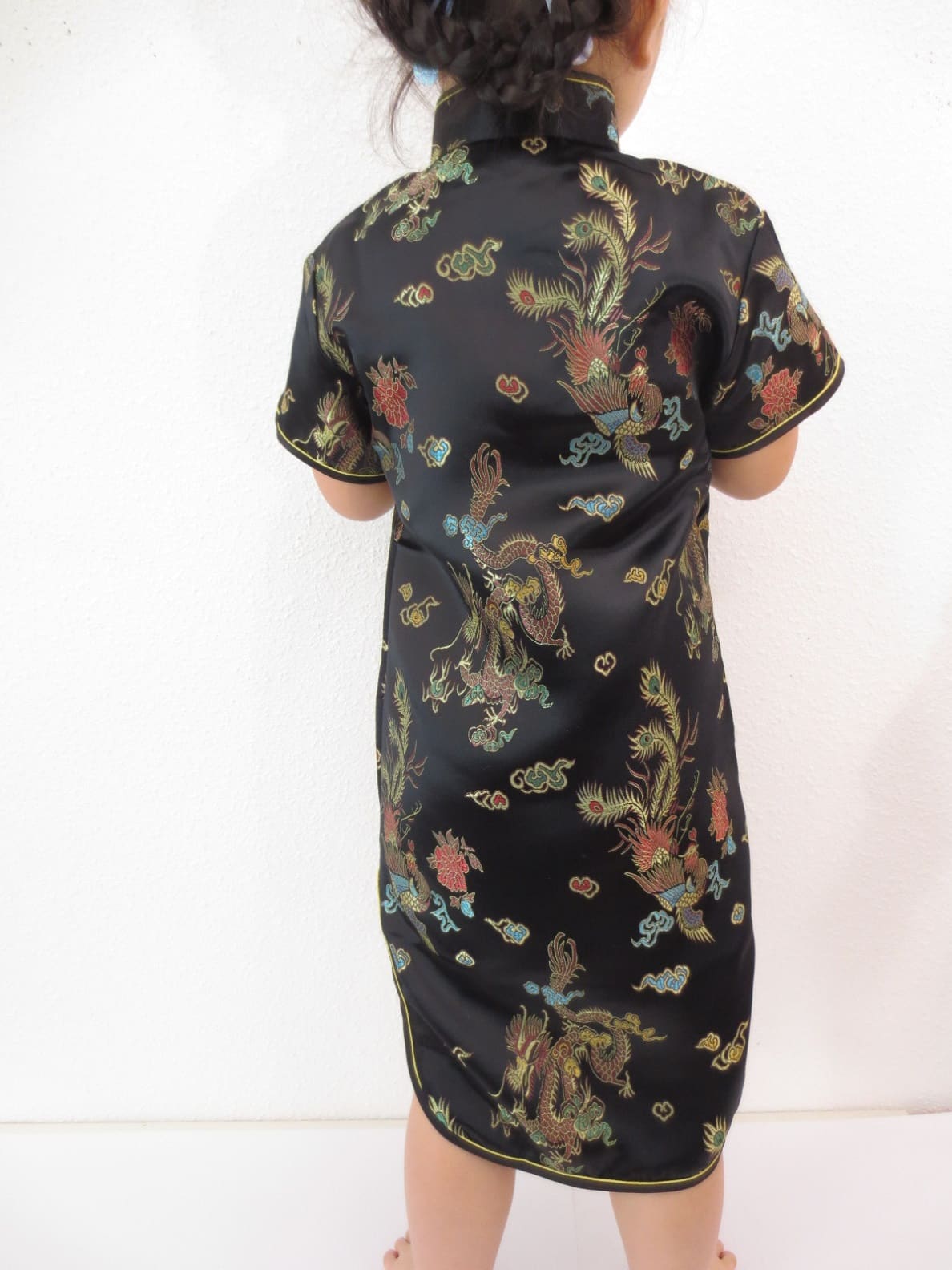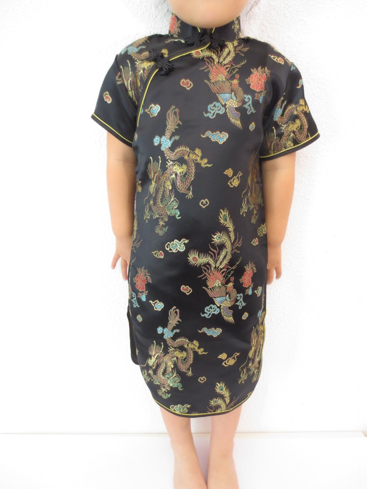 Schöne ärmelloses Kleid aus chinesischer Seide / Satin mit schönen Drachen-Print.Super nettes Kleid für Sommertage ! In verschiedenen Farben erhältlich sizes in cm length Chest Shoulder width 6 = 104/110 66 64 27 8 = 116/122 71 68 28 10 = 128/134 74 70 29 12 = 140/146 78 72 30