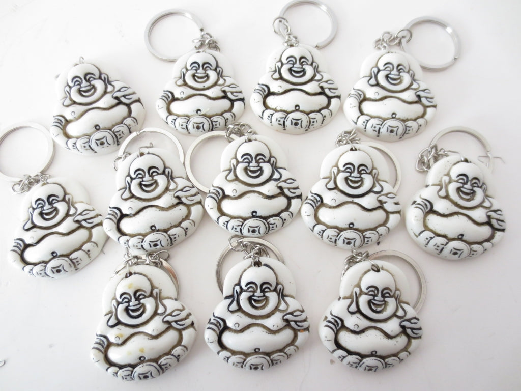 Sleutelhangers traf Lachende Boeddha erop. Dieser Sleutelhanger ist in der Farbe eines Hundes erhältlich.\nDer minimale Afname beträgt 1 Zak (pro Zak sind es 12 Sleutelhangers in)
