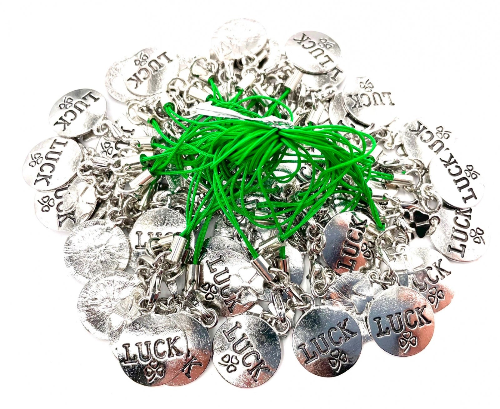 Luck Metal Gelukshanger.\n50 Stück Metallgelukshangers in einem Beutel\nAbmessung: 2 x 2 cm; Insgesamt 8 cm lang\nDer Mindestpreis beträgt 1 Zakje (50 Stück).\nDer Preis beträgt pro Zakje (50 Stück) exkl. Übrigens
