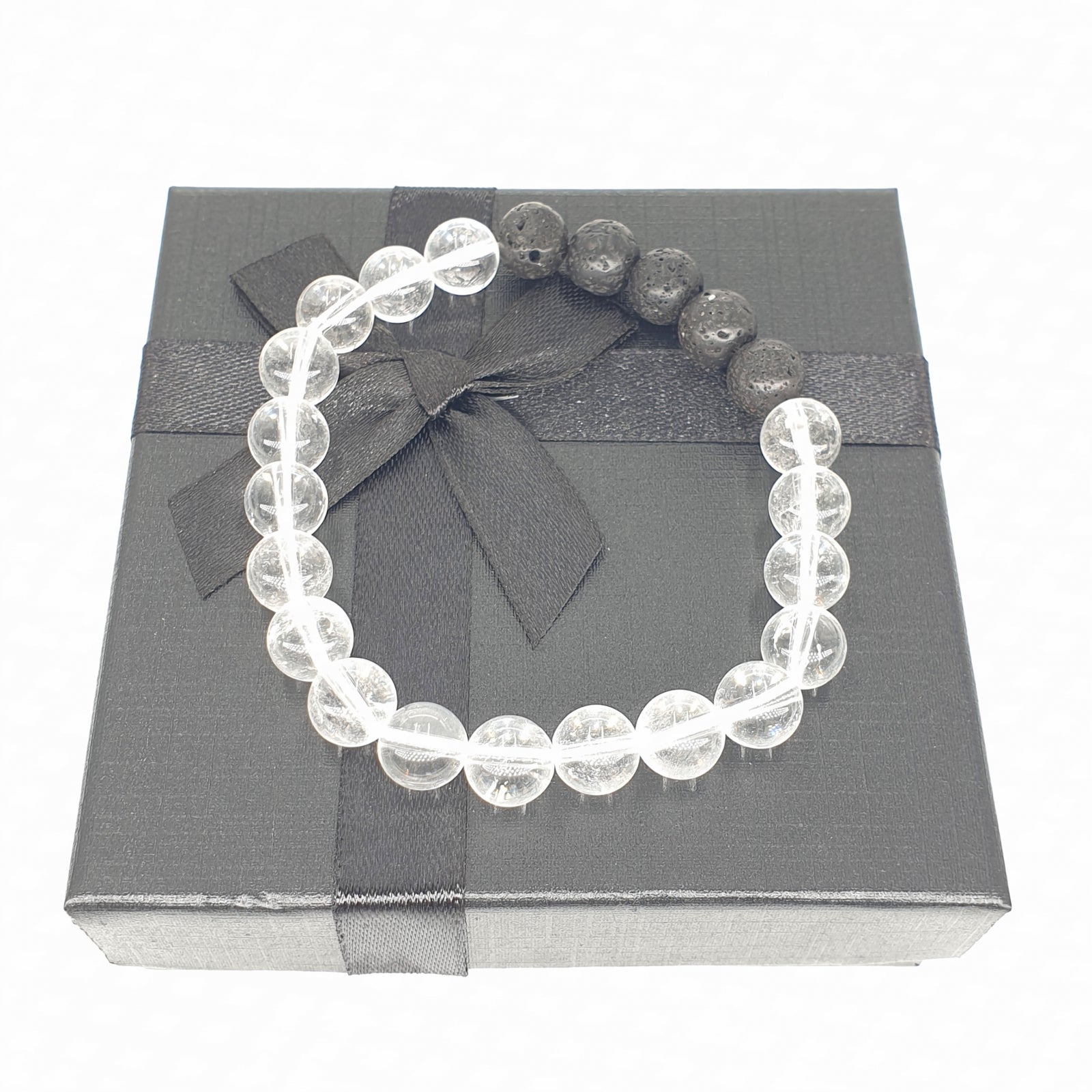 Großhandel – 8-mm-Armband mit Geschenkbox – Bergkristall und Lavastein