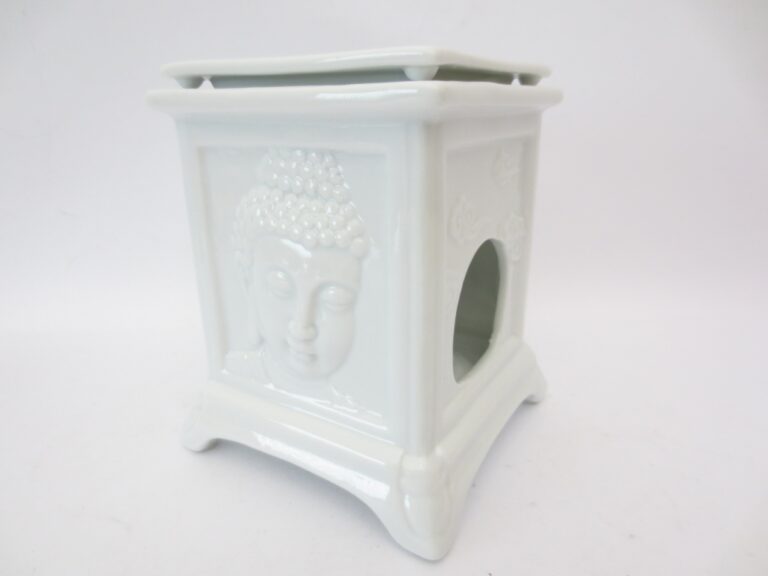 Sehr schöner weißer Ölbrenner mit Buddha-Figur. Der Buddha ist sehr schön und detailreich gestaltet und wirkt sehr beruhigend.\nMindestbestellmenge: 2 Stück