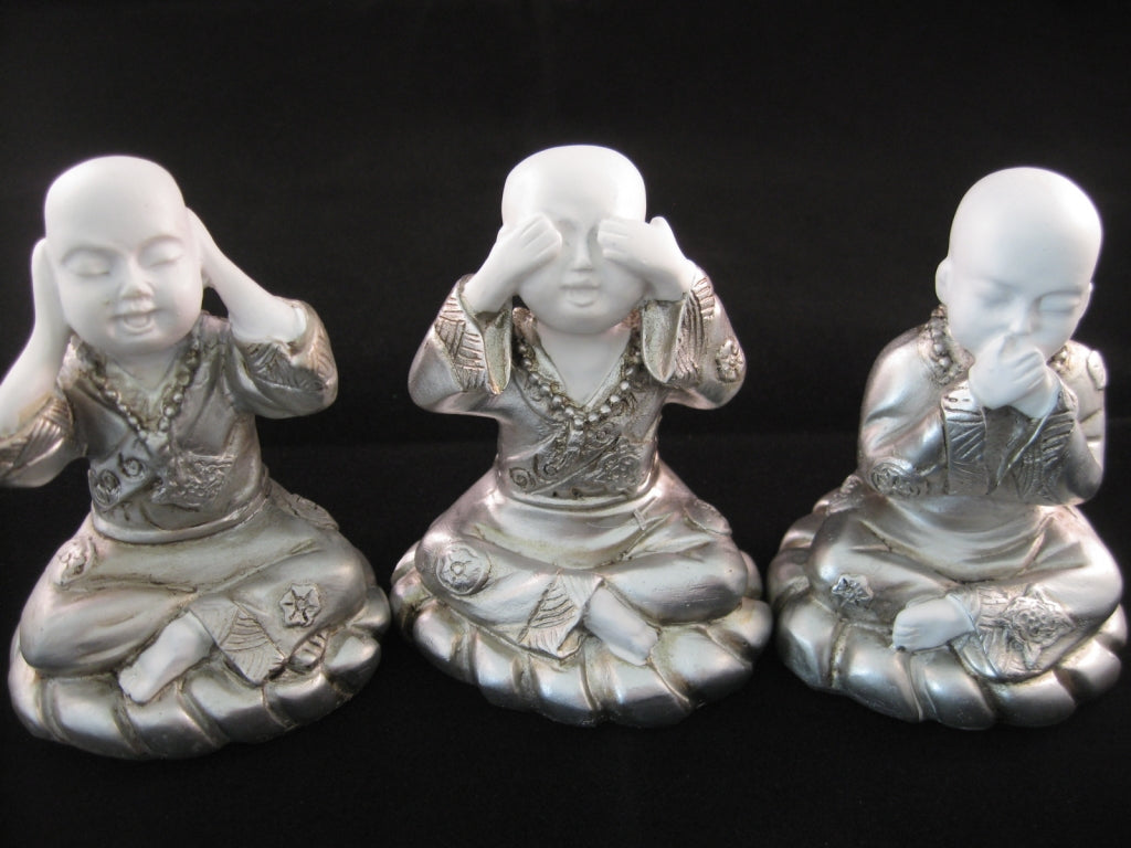 Großhandel - Mini-Mönch, hören, sehen, schweigen, weiß/silber