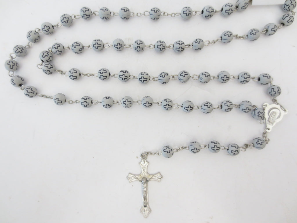 Stahlkette mit rundem Kranz und einem Kranz.\n50 cm lang.\nKreuz = 4 cm: Krallen = 8 mm