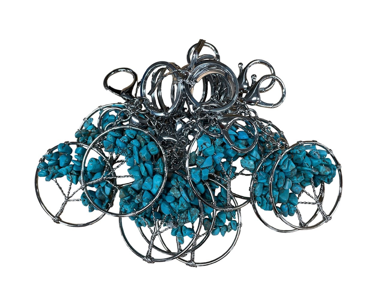 Lebensbaum-Schlüsselanhänger mit Türkis-Edelsteinen